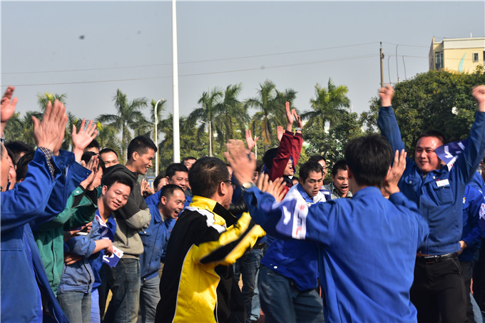 隨著一聲哨響,緊張的比賽拉開帷幕。場上選手全力以赴,場下的員工則當起了啦啦隊,加油聲、歡呼聲此起彼伏,每個人都在輕松、和諧的氛圍中享受著運動的快樂,“汗水與微笑同在,緊張和歡樂并存”成了本屆趣味運動會的真實寫照。參賽的每一個運動員每一個團隊都牽動著在場員工的心弦。同呼吸,共命運。彼此加油、歡呼、喝彩,現(xiàn)場歡聲笑語此起彼伏。