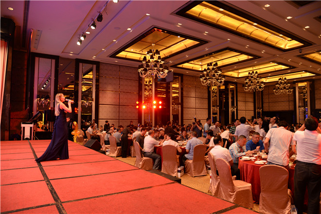 晚宴現(xiàn)場,公司全新拍攝的企業(yè)形象片正式對(duì)外展示,以緊跟時(shí)代腳步與公司發(fā)展軌跡的內(nèi)容,向眾客商、嘉賓及媒體呈現(xiàn)了一個(gè)突飛猛進(jìn)的金馬形象。在對(duì)2016年公司研發(fā)的新產(chǎn)品集錦進(jìn)行回顧時(shí),眾人更是生動(dòng)形象地看到了一個(gè)實(shí)力金馬,正如劉喜旺總經(jīng)理的致辭所言“中山金馬追求又好又快的發(fā)展,追求厚積薄發(fā)式的飛躍產(chǎn)品厚積薄發(fā),量的積累已經(jīng)達(dá)到了質(zhì)的突變”。宴會(huì)上,滿堂燈光璀璨奪目,鮮花氣球五彩繽紛,來自各地的客商、嘉賓熱烈交談,酒斟交錯(cuò)間歡聲笑語不斷,席間還伴以助興歌舞與魔術(shù)節(jié)目、幸運(yùn)抽獎(jiǎng)游戲、客戶互動(dòng)采訪環(huán)節(jié)等,一種愉悅、和樂的氛圍油然而生。近三個(gè)小時(shí)的歡聚后,晚宴在一場《越來越好》歌伴舞節(jié)目的祝福和憧憬中慢慢降下了帷幕。