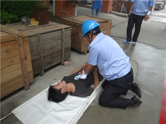 此次演練歷時(shí)半小時(shí),共分為四部分。第一部分是模擬火災(zāi)事故現(xiàn)場(chǎng),救火組成員即刻切斷電源,并用水帶水槍及滅火器進(jìn)行滅火操作。第二部分是人員疏散組成員在確認(rèn)發(fā)生火警后,趕到往H棟車間各層樓梯“安全出口”處,組織疏散現(xiàn)場(chǎng)人員有序撤離至安全區(qū)域,保證樓道暢通,防止踩踏事故。第三部分是人員物資搶救組成員趕到三樓事發(fā)現(xiàn)場(chǎng),配合救火組清理現(xiàn)場(chǎng)危險(xiǎn)物品,開辟防火隔離帶,救護(hù)傷員,同時(shí)采用人工呼吸法作簡(jiǎn)單救治。第四部分是照明、通訊組成員配合其他三組負(fù)責(zé)場(chǎng)地照明、模擬報(bào)警、接警車,并在滅火后留現(xiàn)場(chǎng)繼續(xù)監(jiān)查,防止二次火災(zāi)發(fā)生。