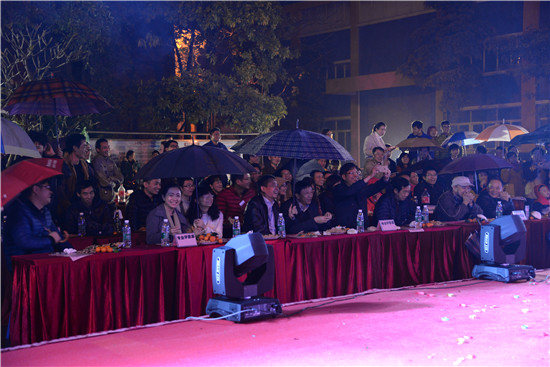 晚會(huì)在當(dāng)日18:30準(zhǔn)時(shí)開始,近300名金馬人有序齊聚臺(tái)下,一卸工作的疲累,放松精神,歡樂暢談,縱享小食。一開始是前期迎春文體系列活動(dòng)的頒獎(jiǎng)表彰環(huán)節(jié),籃球、羽毛球、桌球、乒乓球、越野、攀巖等各項(xiàng)活動(dòng)獲獎(jiǎng)代表分別從頒獎(jiǎng)?lì)I(lǐng)導(dǎo)手中接過獎(jiǎng)狀和獎(jiǎng)金,喜悅之情溢于言表。隨后,文藝匯演正式開始,瞬時(shí)音樂響起,燈光閃爍,全場(chǎng)目光齊刷刷地射向舞臺(tái)。喜慶洋洋的“恭喜發(fā)財(cái)”率先登臺(tái),來自機(jī)械車間的6名員工將濃濃的年味散播至現(xiàn)場(chǎng)每一個(gè)角落;開料車間創(chuàng)意策劃編排的“大王叫我來巡山”舞蹈完美融合生肖吉祥物寓意,打造出一個(gè)“眾猴拱雞”的趣味舞臺(tái);來自玻璃鋼車間王曉玲的一首“映山紅”以其游刃有余的高聲調(diào)震撼全場(chǎng);精益部的“ 鞋釘”小品雖僅2人登臺(tái),卻憑借生動(dòng)形象的人物塑造與演出征服了臺(tái)下評(píng)委與觀眾... ...匯演中場(chǎng)雖時(shí)有毛毛細(xì)雨拂起,但像雨像霧又像風(fēng)的感覺為演出現(xiàn)場(chǎng)平添了一絲韻味,增添了一份浪漫的氣息,整場(chǎng)表演更是可謂精彩紛呈、引人入勝。