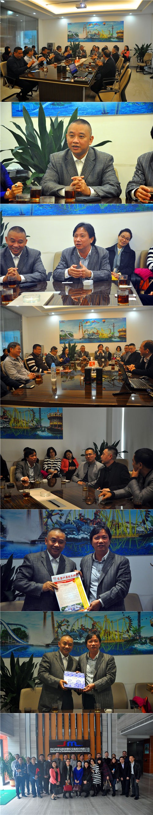 會上,首先由省商業(yè)地產(chǎn)協(xié)會副會長、我司董事長鄧總進行介紹,為在座闡述了公司的經(jīng)營理念及發(fā)展現(xiàn)狀,其中,鄧總特別對游樂與商業(yè)地產(chǎn)的聯(lián)動發(fā)展思路進行了講解,并歡迎各界企業(yè)家與金馬一道共筑商機、共謀發(fā)展。隨后,現(xiàn)場就游樂與其他領(lǐng)域的交互進行了探討,并就有關(guān)議題深入交流作了下一步的安排。最后,會議在熱烈的交流中落下帷幕。