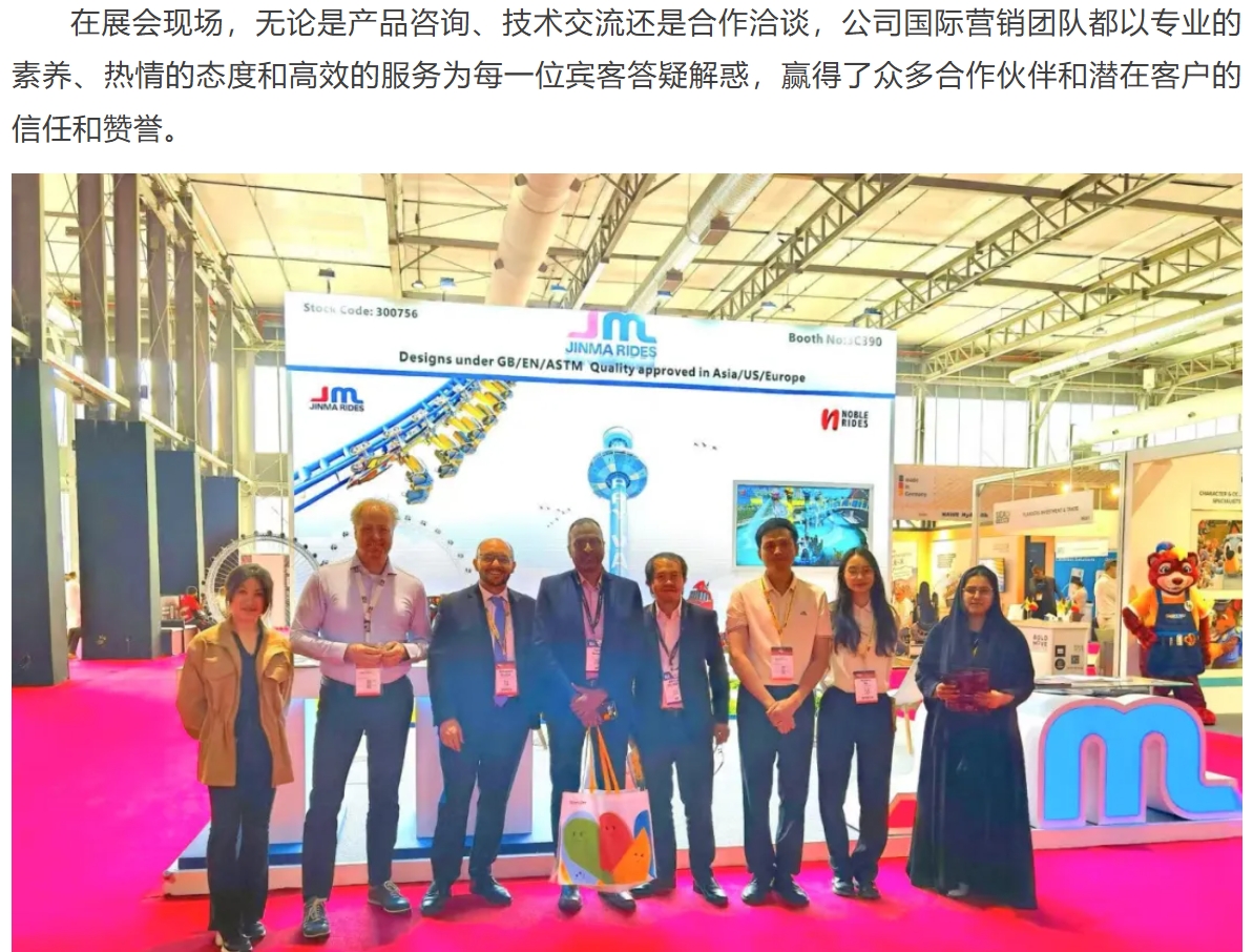 中東市場具有獨(dú)特文化和消費(fèi)習(xí)慣,公司將根據(jù)市場特點(diǎn)進(jìn)一步優(yōu)化產(chǎn)品設(shè)計(jì)和服務(wù)方案,以更加貼合當(dāng)?shù)匦枨蟮挠螛费b備產(chǎn)品和解決方案力求取得更大突破,持續(xù)深耕中東市場。同時,公司也將以此為契機(jī),進(jìn)一步加大全球市場拓展力度,期待與全球客戶攜手合作,共同開創(chuàng)游樂裝備行業(yè)的美好未來。