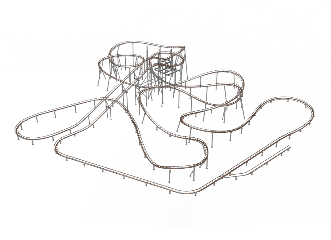 礦山車模仿古代礦山列車運行模式,采用仿古式的火車造型,游客仿佛置身于礦山現(xiàn)場。全程路軌設有兩個提升段,配合先進變軌技術(shù)、減震膠與柔和的永磁制動,為乘客乘坐帶來舒適靜謐的體驗。同時獨特的壓腹式壓杠結(jié)構(gòu),確保包括?度1.1m以上兒童可被有效束縛,增大游客受眾范圍。