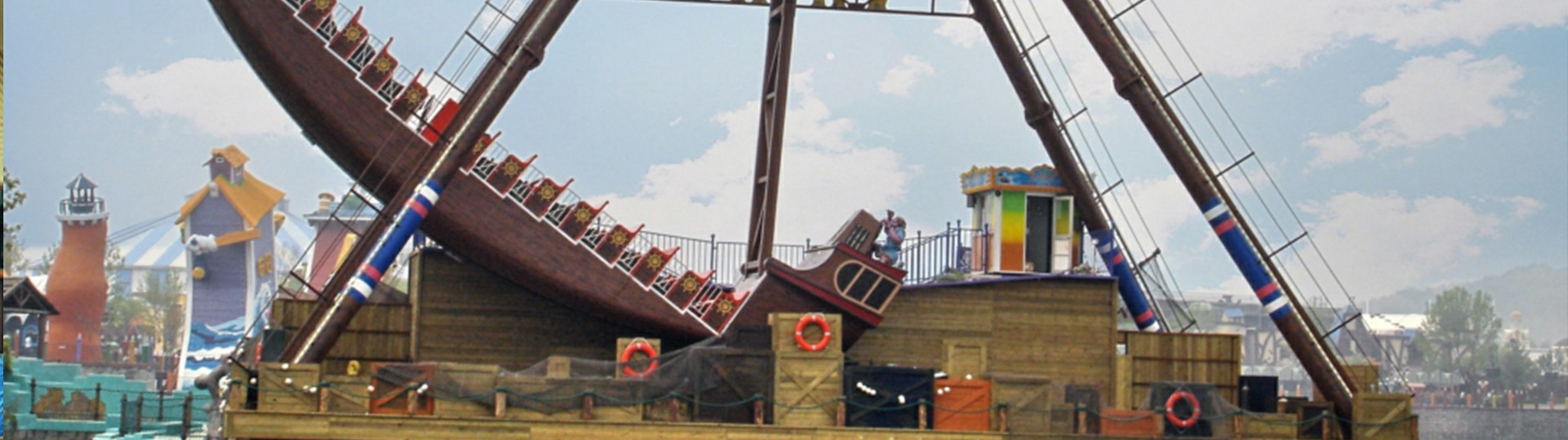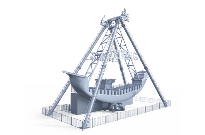 海盜船繞水平軸來(lái)回?cái)[動(dòng),模擬海盜乘風(fēng)出海的場(chǎng)景,交替而至的失重和超重感讓乘客盡情體驗(yàn)搖擺的樂(lè)趣。16排座椅,承載96人。
