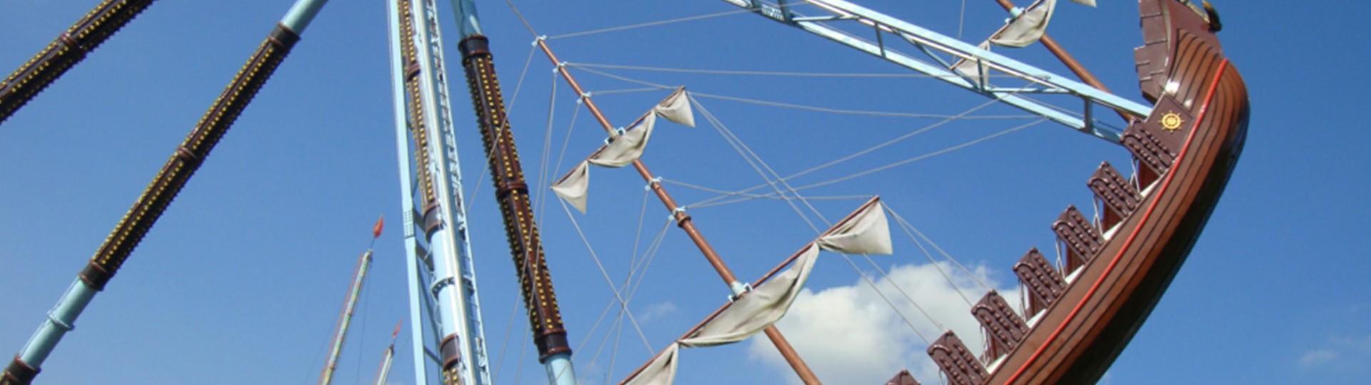 海盜船繞水平軸來(lái)回?cái)[動(dòng),模擬海盜乘風(fēng)出海的場(chǎng)景,交替而至的失重 和超重感讓乘客盡情體驗(yàn)搖擺的樂(lè)趣。14排座椅,承載56人。