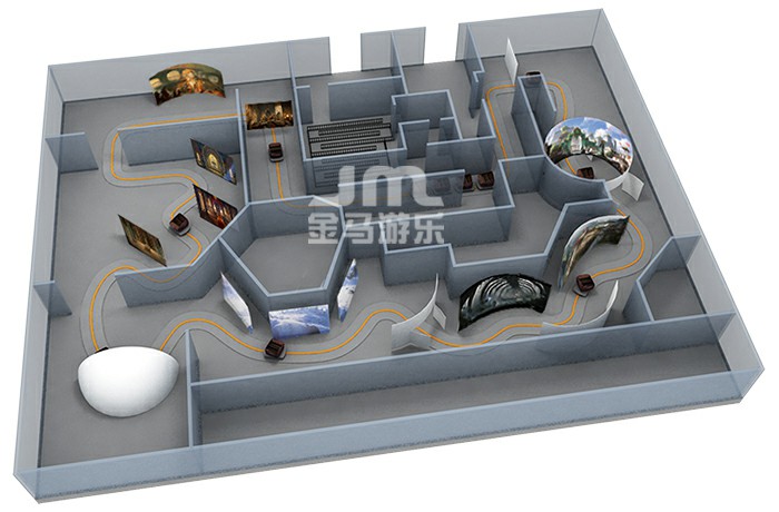 動(dòng)感黑暗乘騎采用創(chuàng)新型六自由度動(dòng)感騎乘設(shè)備,游客乘坐動(dòng)感座艙穿梭由主題景觀、高清影片、機(jī)模、特效、音效等組成的不同故事場景,是擁有高沉浸感的體驗(yàn)游樂項(xiàng)目。