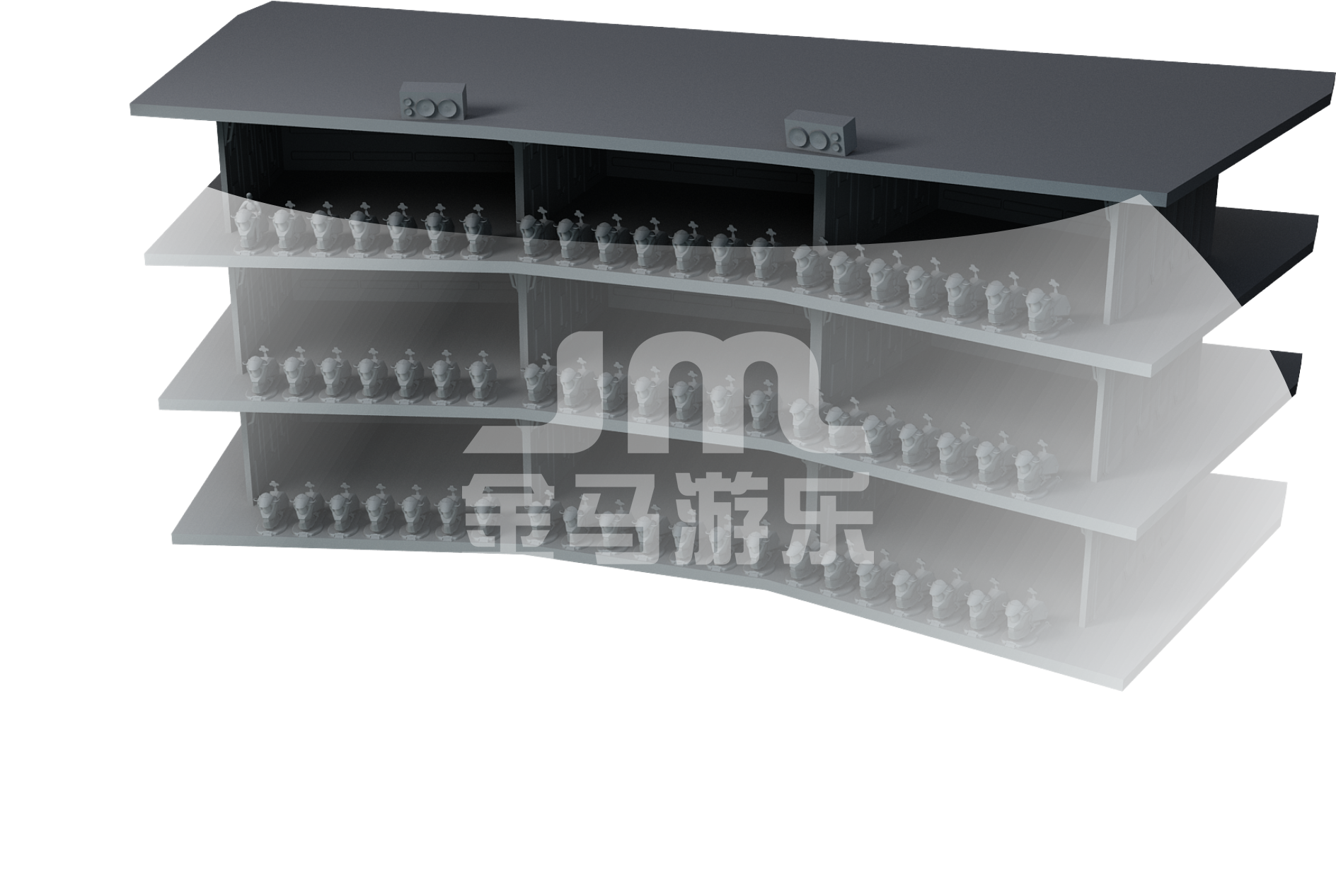 騎跨式飛行影院以騎跨方式代替?zhèn)鹘y(tǒng)座椅,屬國內(nèi)首創(chuàng),采用獨(dú)立多自由度座椅,使每一位乘客擁有著相同的感觀,結(jié)合提升體驗(yàn)效果;結(jié)合高清球幕電影以及震撼逼真的科技特效,為乘客打造一場身臨其境的沉浸式游樂體驗(yàn)。